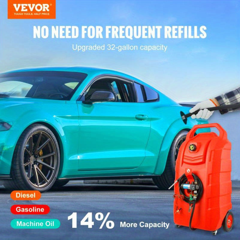 32 Gallon Portable Fuel Caddy with 12V DC Pump and 8. 2 ft Hose for Gasoline and Diesel Storage