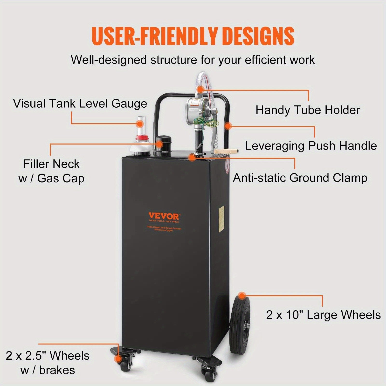 VEVOR 35 Gallon Fuel Caddy with Wheels - Portable Gas Storage Tank & Transfer Pump