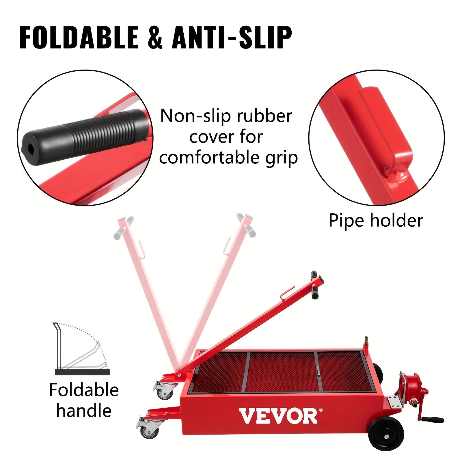 [Oil Drain Pan | 18G] VEVOR 18 Gallon Large Capacity Oil Drain Pan | Low Profile, Foldable, With Pump, Hose, Swivel Casters Wheels