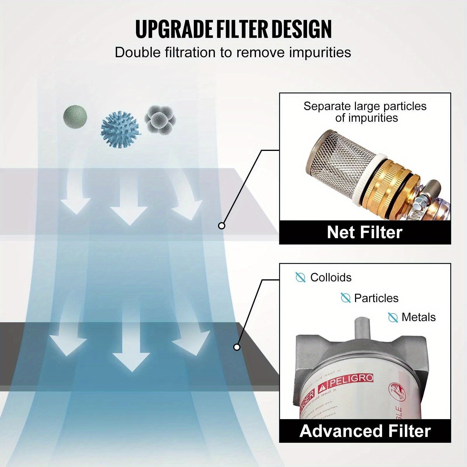Dual filtration system ensures cleaner fuel by filtering out debris and contaminants.